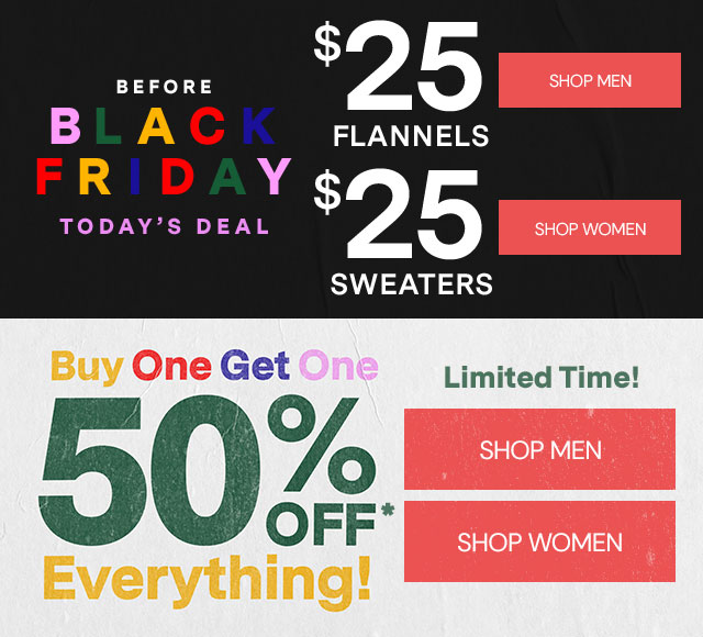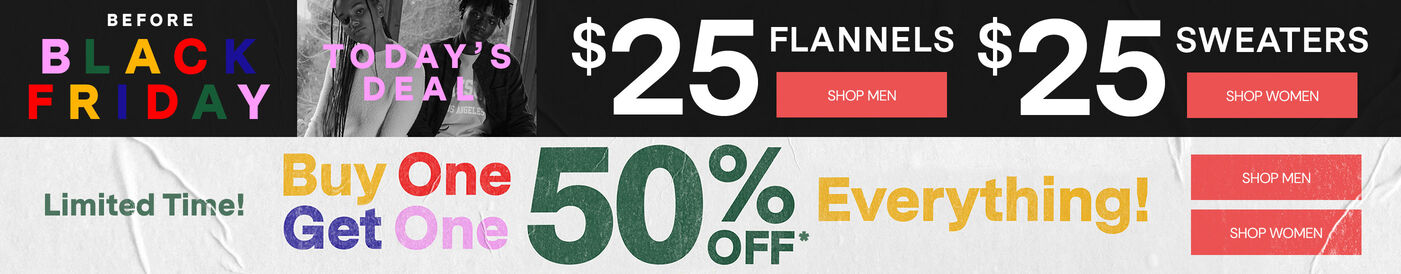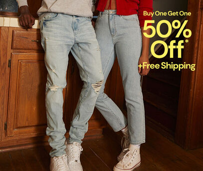 *Valid on select styles. Discounted item must be of equal or lesser value. Savings not applicable to taxes. Free standard or $8 express shipping on orders over $50. Free standard shipping on jeans, pants and regular swim. U.S. only. PacSun loyalty members receive free standard shipping. U.S. only. Must be logged into account to qualify. Shipments to AK, HI, PR and Military APO/FPO do not qualify for free shipping. Offer subject to change.