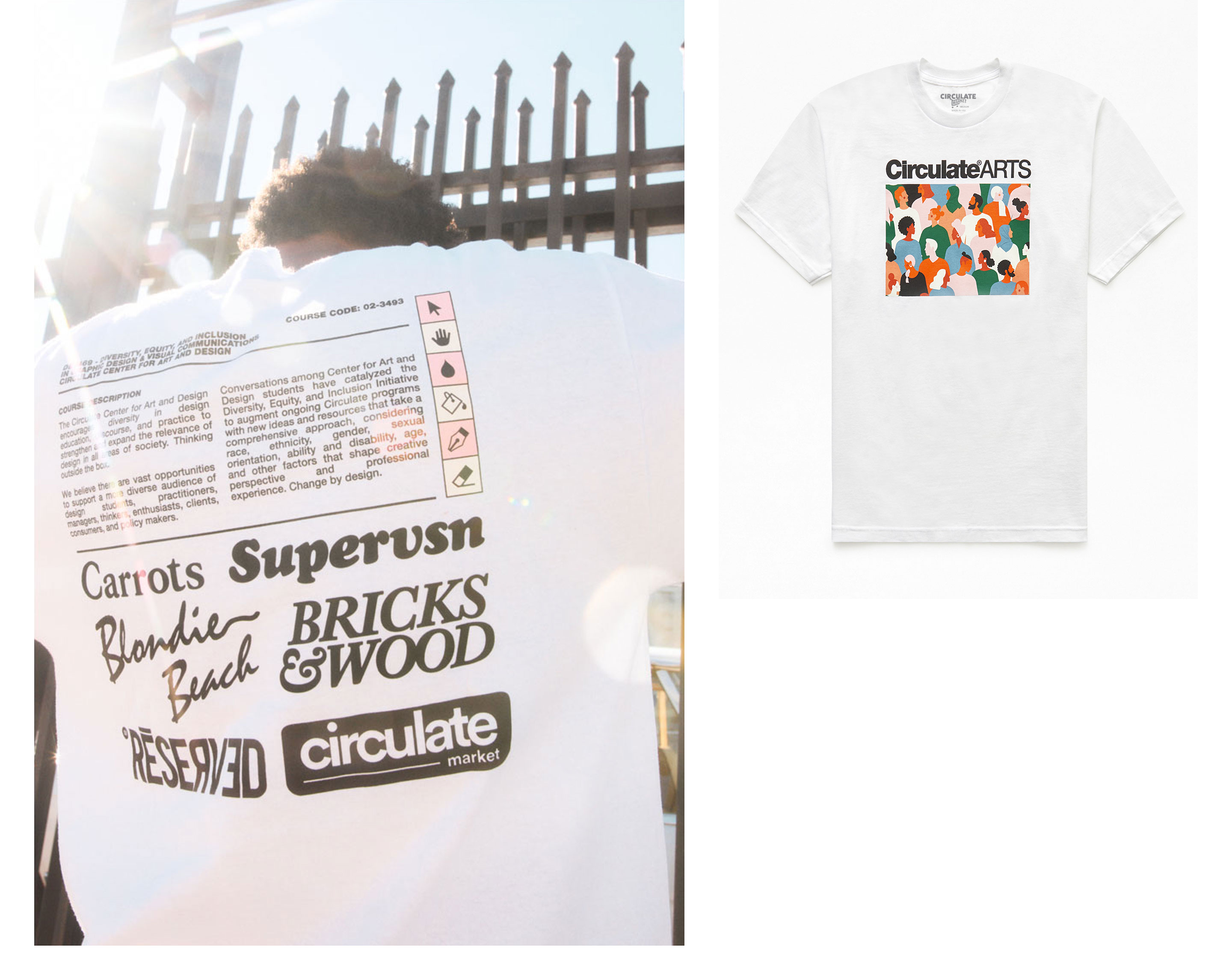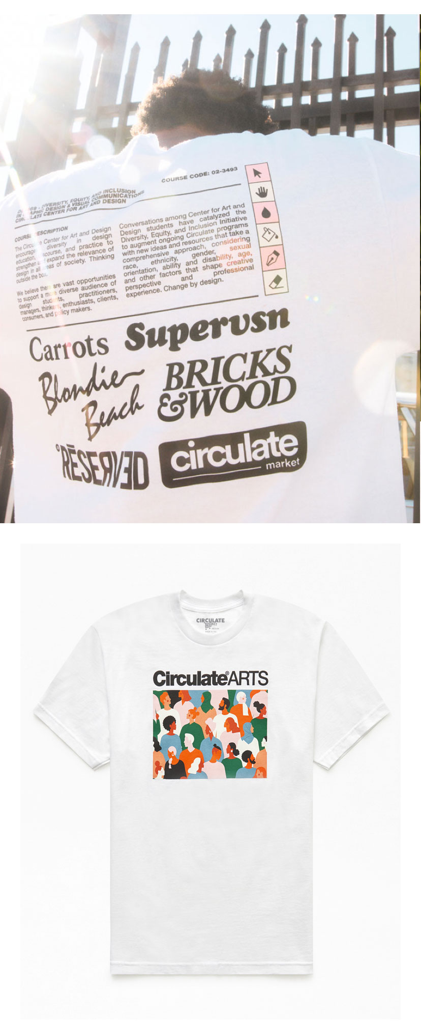 Circulate Arts t-shirt encourages diversity in design education, discourse, and practice to strengthen and expand relevance of design in all areas of society. Thinking outside the box. Through the Circulate Arts t-shirt we have partnered up with 6 local charities and giving them 100% of the profits to continue that mission.
