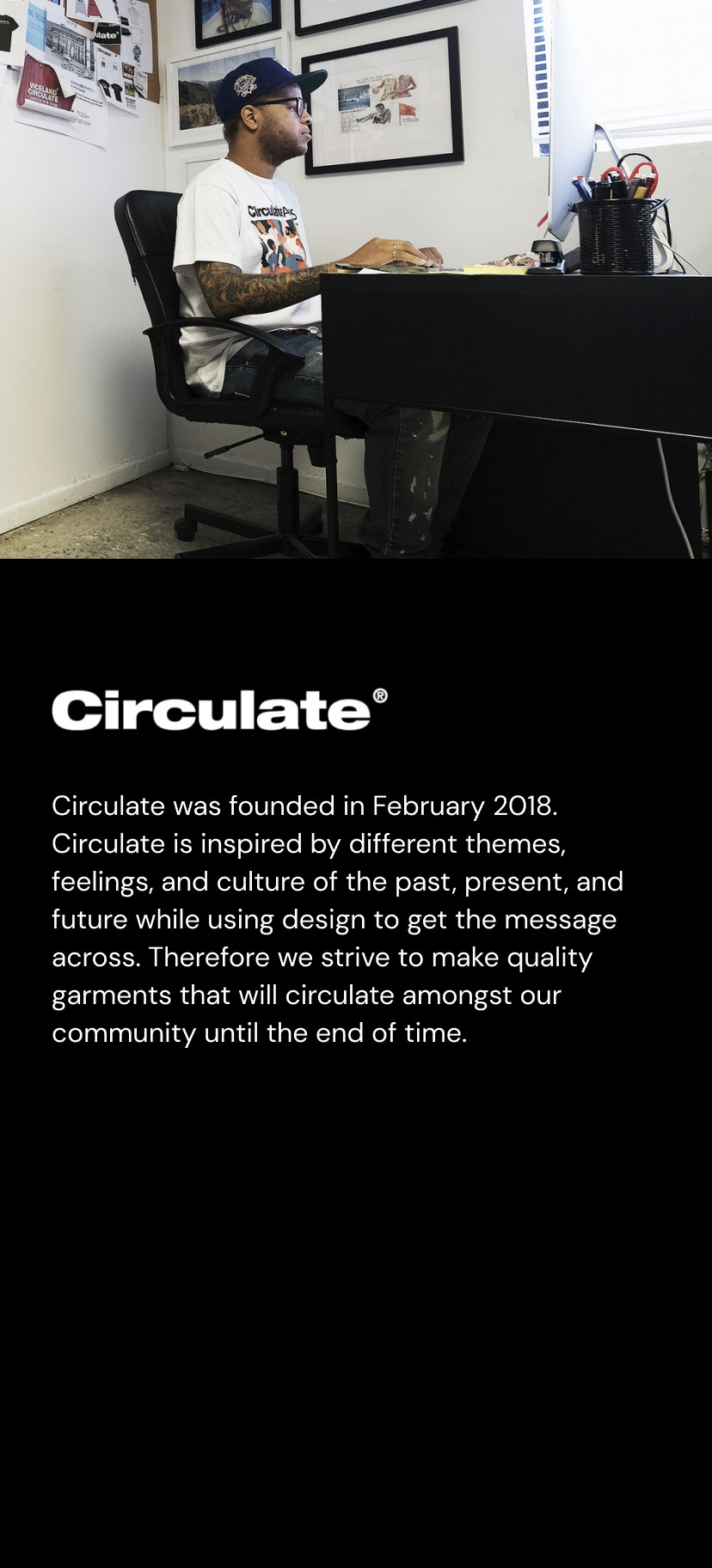 Circulate Market is the crossroads between community and diversity within design. Powered by 6 black owned streetwear brands and one photographer all coming together to show the power of strength in numbers. Each brand will deliver their own inline collection and collaboration with Circulate that they felt represented their brand and community. They will also feature one additional collaborative t-shirt with all of the brands present where 100% of the profits will be donated to different local charities hand picked by each brand. It will be carried online and in store with a special Pop up in the Soho and DTLA locations.